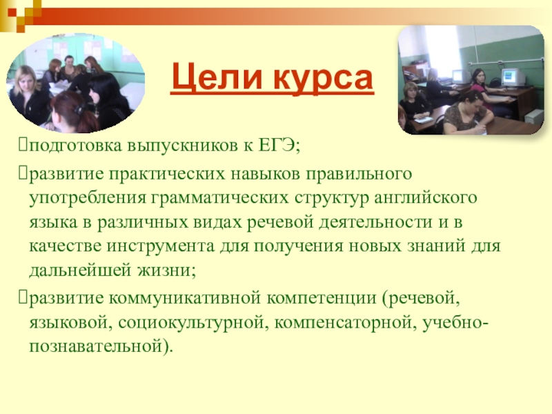 грамматических структур английского языка в различных видах речевой деятельности и в качестве инструмента для получения новых знаний для дальнейшей жизни;
