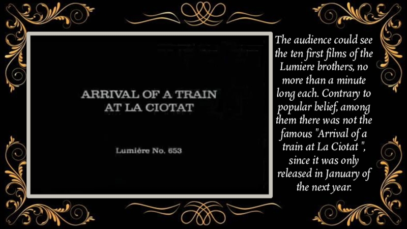 brothers, no more than a minute long each. Contrary to popular belief, among them there was not the famous "Arrival of a train at La Ciotat ", since it was only released in January of the next year.
