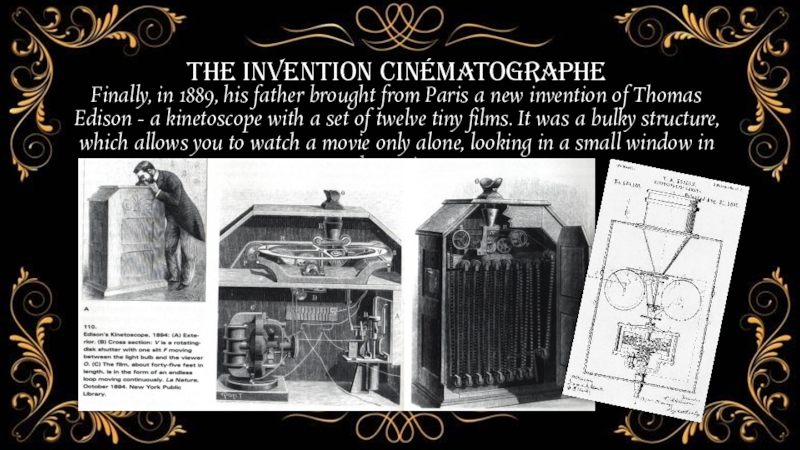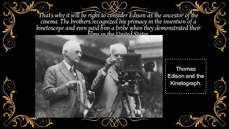 ancestor of the cinema. The brothers recognized his primacy in the invention of a kinetoscope and even paid him a bribe when they demonstrated their films in the United States.