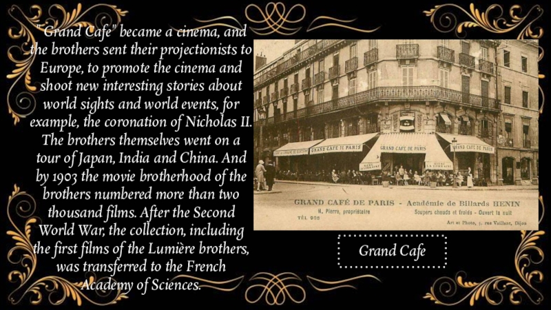 Слайд 22" Grand Cafe" became a cinema, and the brothers sent their