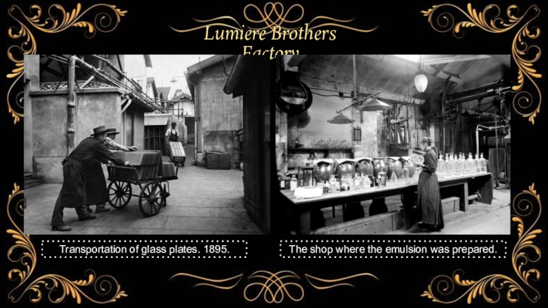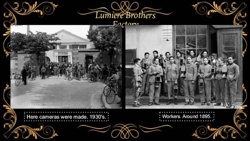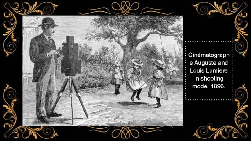 Слайд 9Cinématographe Auguste and Louis Lumiere in shooting mode. 1896.