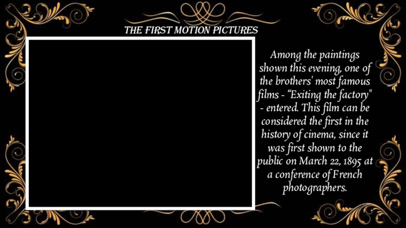 the brothers' most famous films - “Exiting the factory" - entered. This film can be considered the first in the history of cinema, since it was first shown to the public on March 22, 1895 at a conference of French photographers.