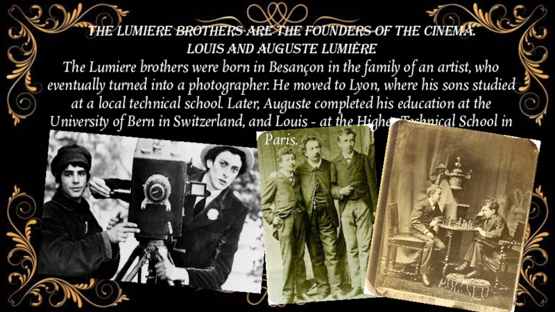 Слайд 2The Lumiere brothers are the founders of the cinema.