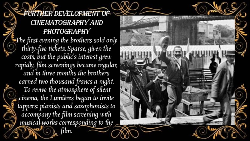 photography their main occupation, and they saw no future in the cinema. Despite this, they continued to work on technology, because they were businessmen and were not used to losing the profit, and the cinema was just beginning to get into fashion.