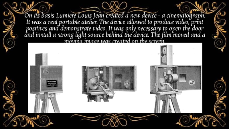 Слайд 6On its basis Lumiere Louis Jean created a new device -