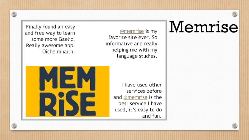 I have used other services before and @memrise is the best service I have used, it’s easy to do and fun.