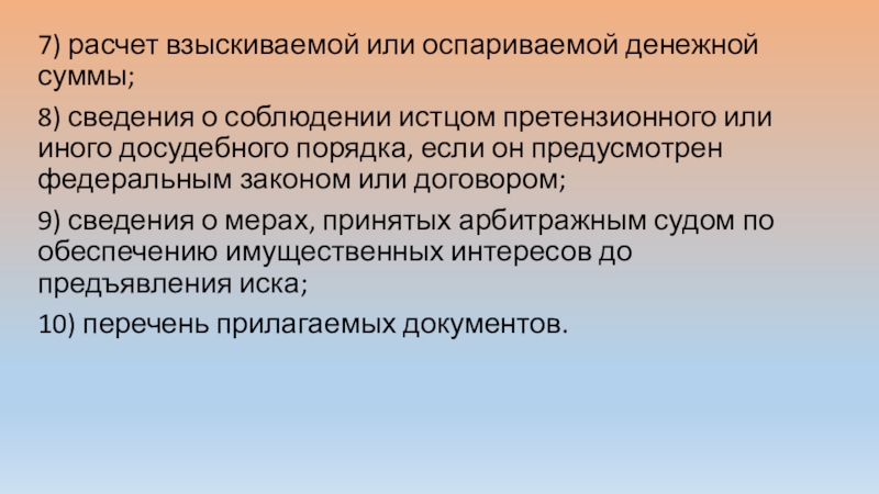 Слайд 67) расчет взыскиваемой или оспариваемой денежной суммы;