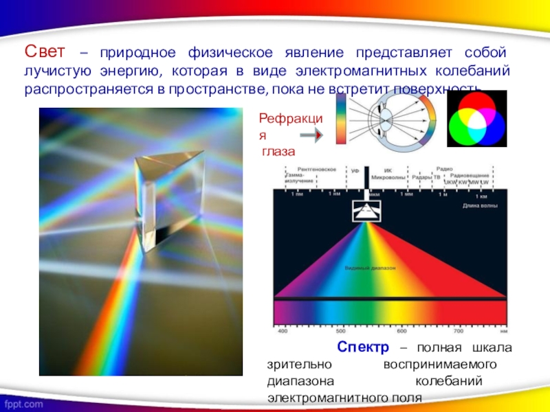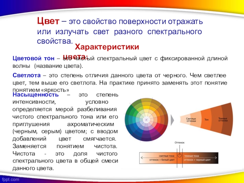 Цвет – это свойство поверхности отражать или излучать свет разного спектрального свойства.