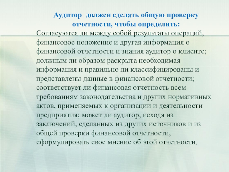 Слайд 3Аудитор должен сделать общую проверку отчетности, чтобы определить: