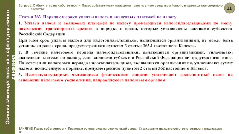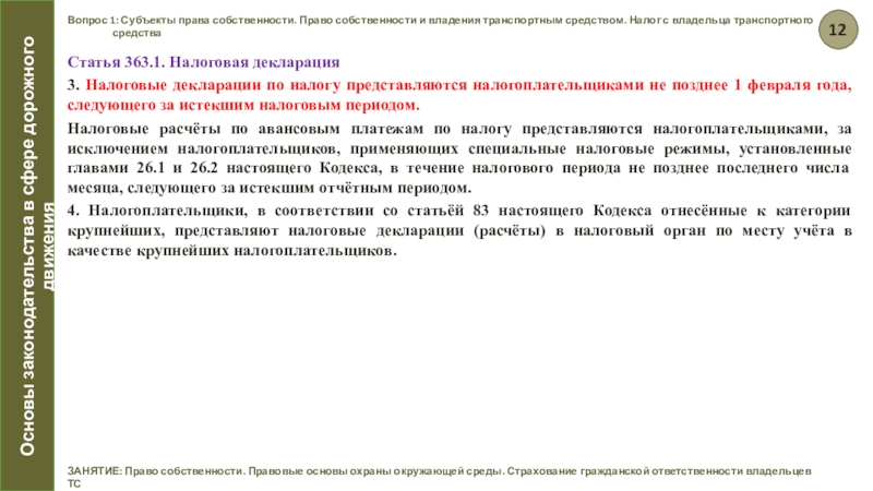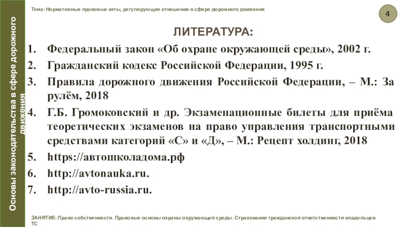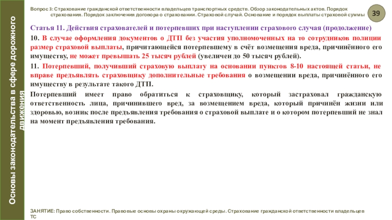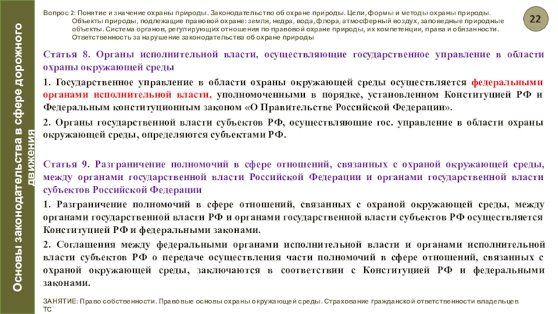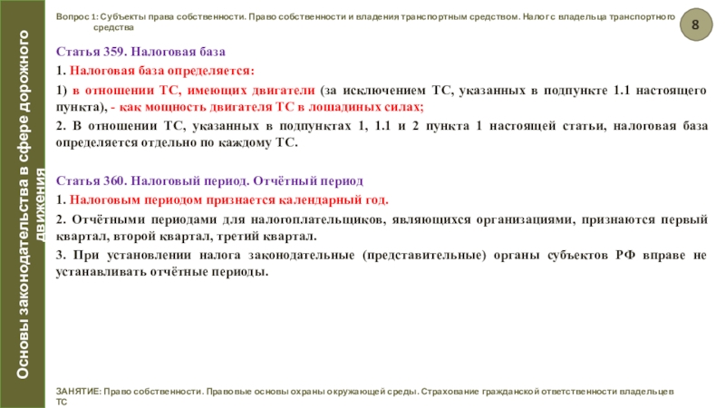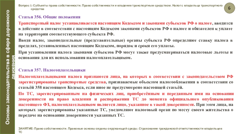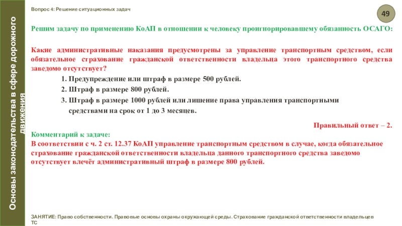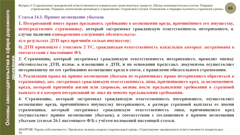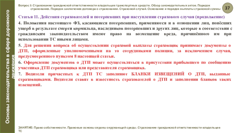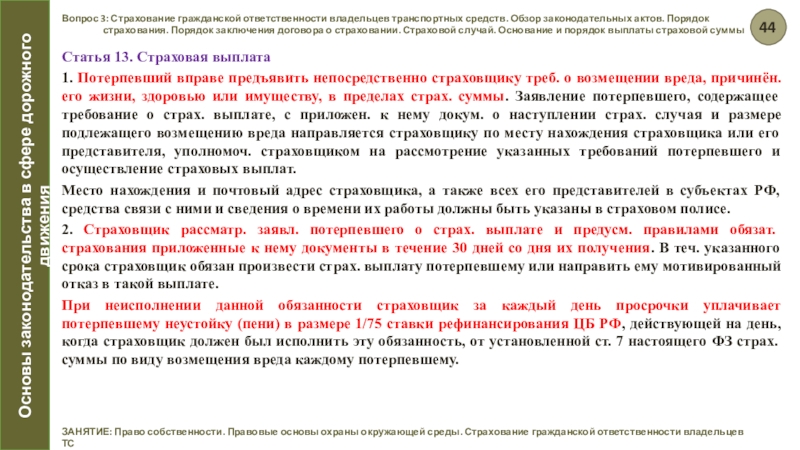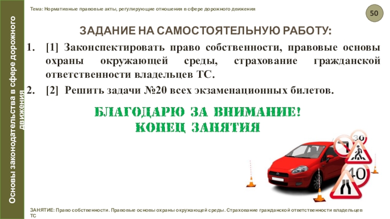 ЗАНЯТИЕ: Право собственности. Правовые основы охраны окружающей среды. Страхование гражданской ответственности владельцев ТС