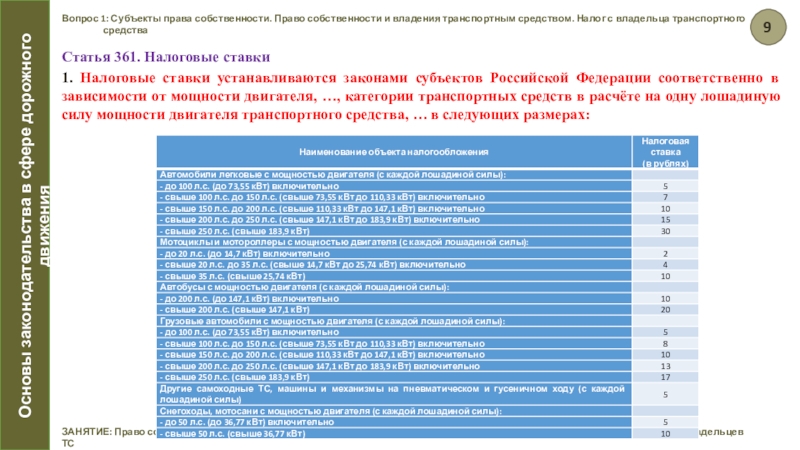 Субъекты права собственности. Право собственности и владения транспортным средством. Налог с владельца транспортного средства.