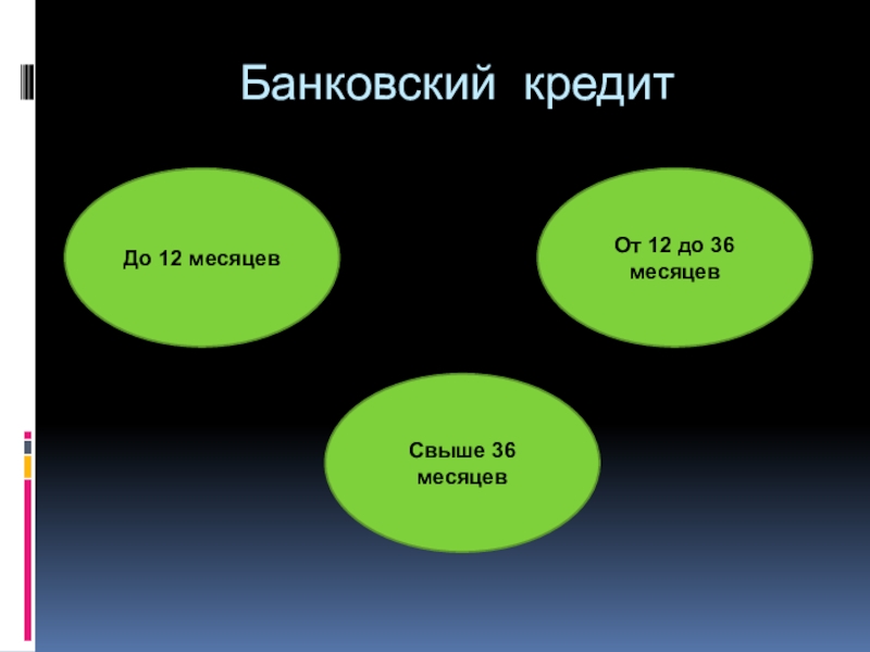 Банковский кредитДо 12 месяцевСвыше 36 месяцевОт 12 до 36 месяцев