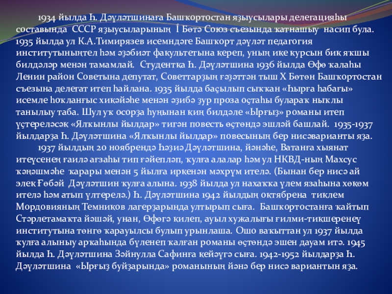 Слайд 6 1934 йылда Һ. Дәүләтшинаға Башҡортостан яҙыусылары