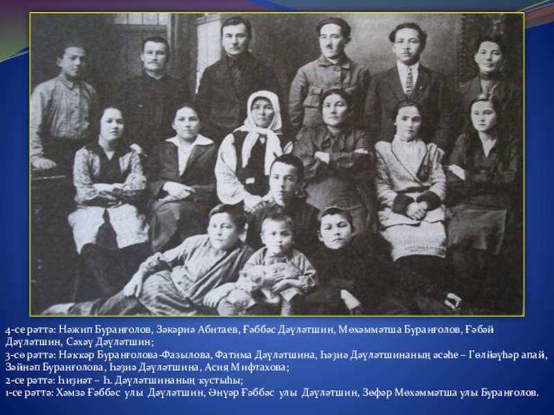 Слайд 54-се рәттә: Нәжип Буранғолов, Зәкәриә Абитаев, Ғәббәс Дәүләтшин, Мөхәммәтша Буранғолов, Ғәбәй