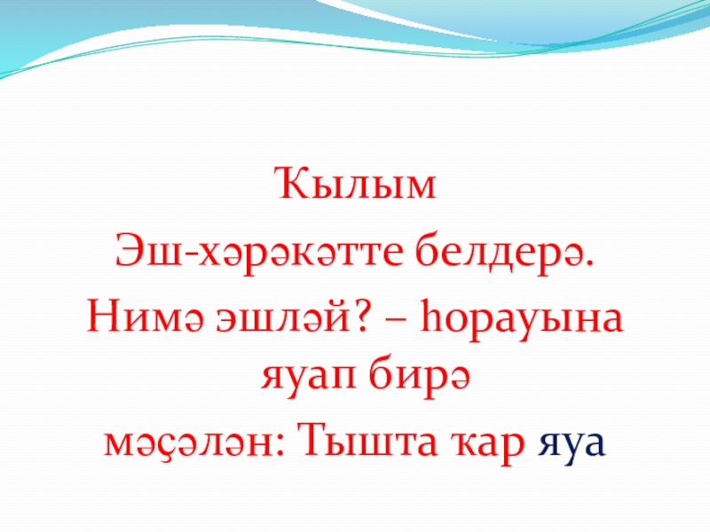 ҠылымЭш-хәрәкәтте белдерә.Нимә эшләй? – һорауына яуап бирәмәҫәлән: Тышта ҡар яуа
