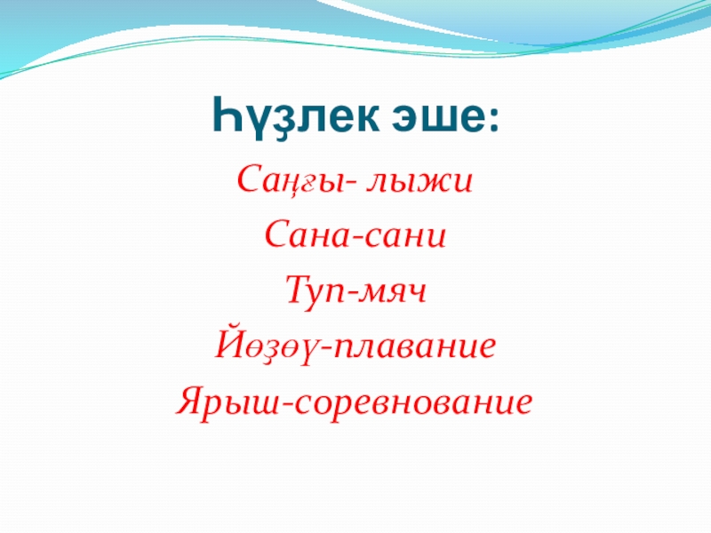 Һүҙлек эше:Саңғы- лыжиСана-саниТуп-мячЙөҙөү-плаваниеЯрыш-соревнование