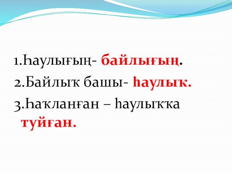 Слайд 203.Һаҡланған – һаулыҡҡа...