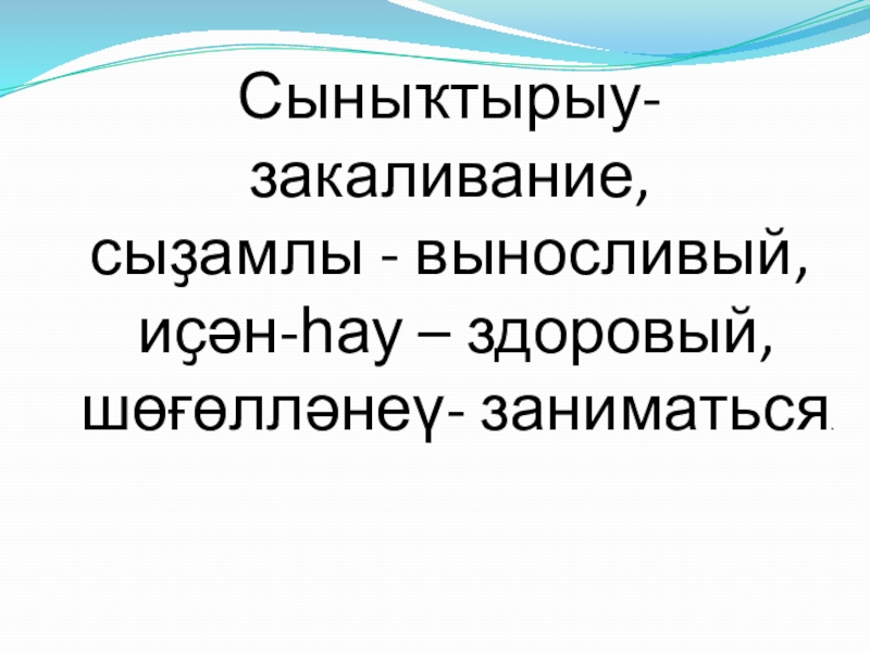 Сыныҡтырыу- закаливание, сыҙамлы - выносливый, иҫән-һау – здоровый, шөғөлләнеү- заниматься.