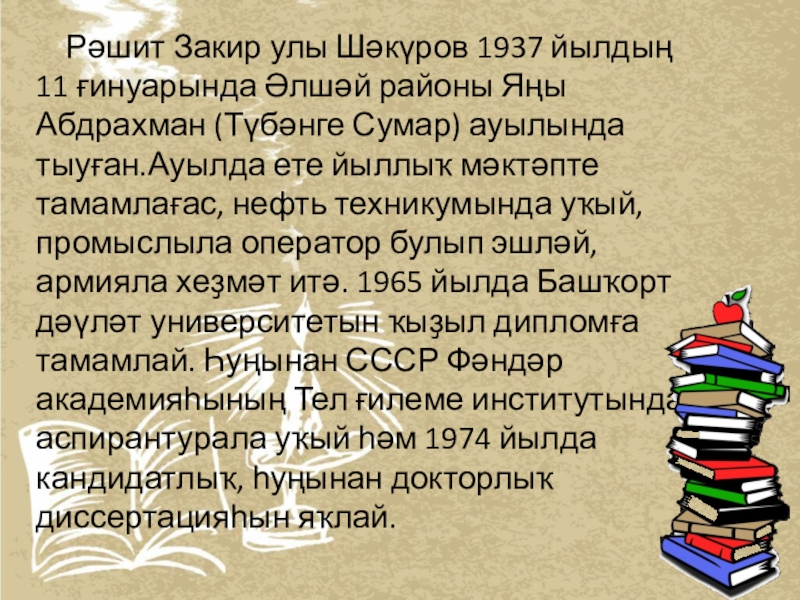 Презентация, доклад по башкирскому языку на тему Рәшит Шәкүр