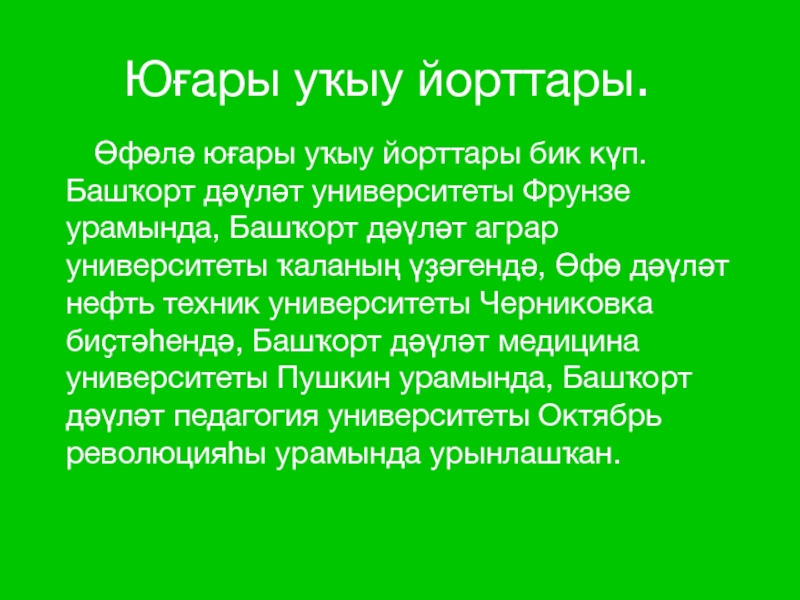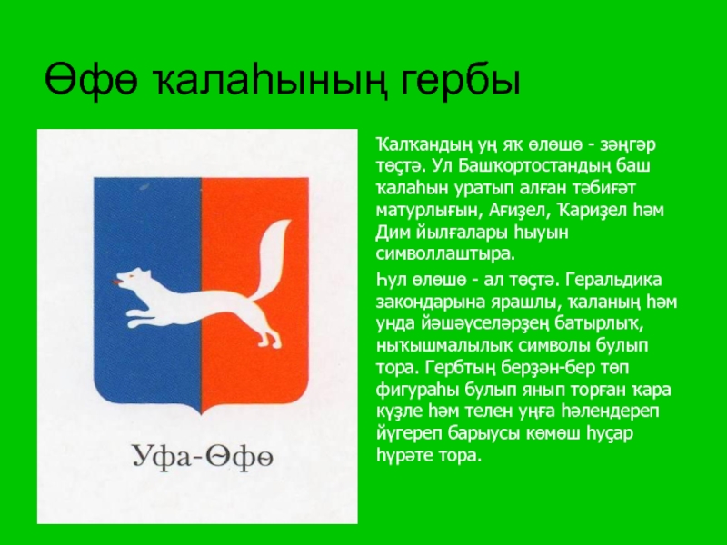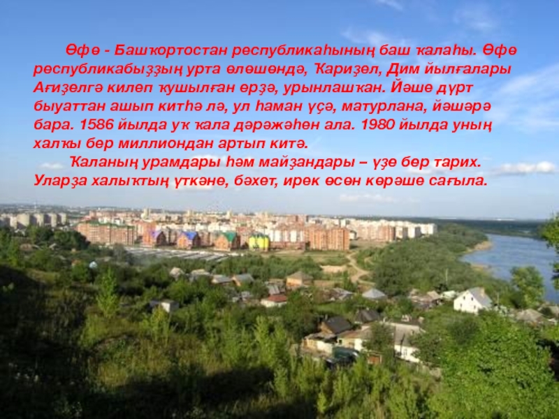 Слайд 5 Өфө - Башҡортостан республикаһының баш ҡалаһы. Өфө