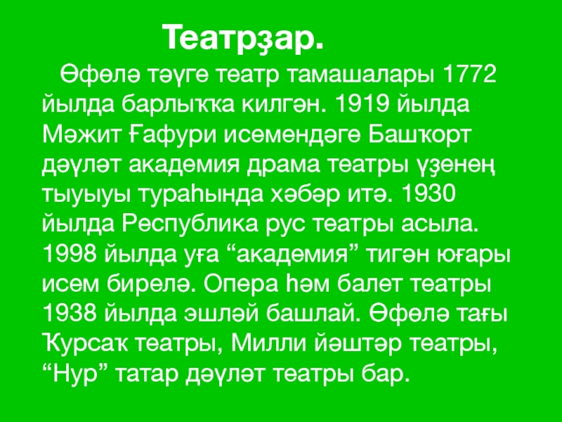 Слайд 26Мәжит Ғафури исемендәге Башҡорт дәүләт академия театры