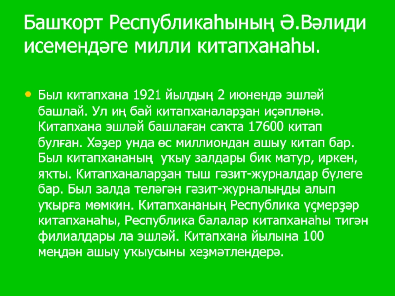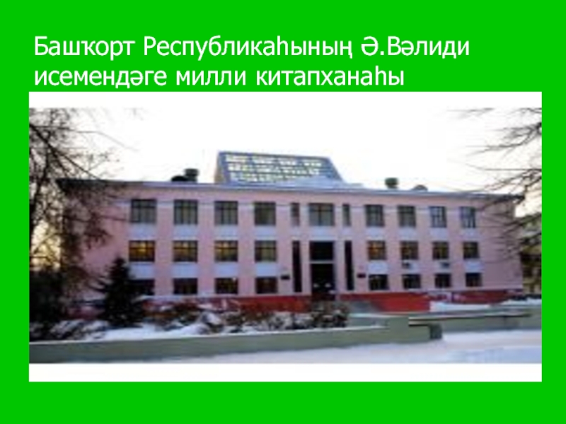 Слайд 32Башҡорт Республикаһының Ә.Вәлиди исемендәге милли китапханаһы