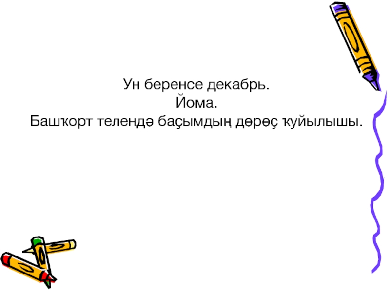 Ун беренсе декабрь.Йома.Башҡорт телендә баҫымдың дөрөҫ ҡуйылышы.