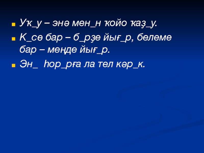 Слайд 8Уҡ_у – энә мен_н ҡойо ҡаҙ_у.