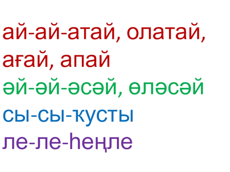 Слайд 6ай-ай-атай, олатай, ағай, апай әй-әй-әсәй, өләсәй сы-сы-ҡусты ле-ле-һеңле