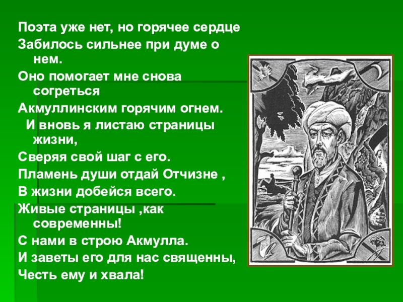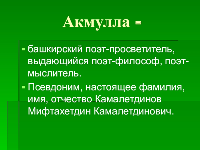 Слайд 4Мифтахетдин Акмулла является крупнейшим представителем башкирской поэзии XIX века, оказавшим сильнейшее