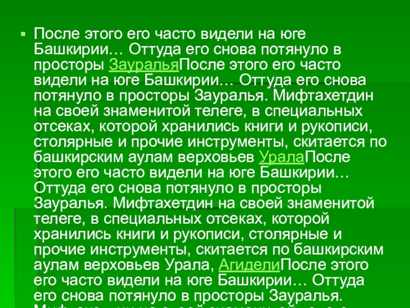 Слайд 10После этого его часто видели на юге Башкирии… Оттуда его снова