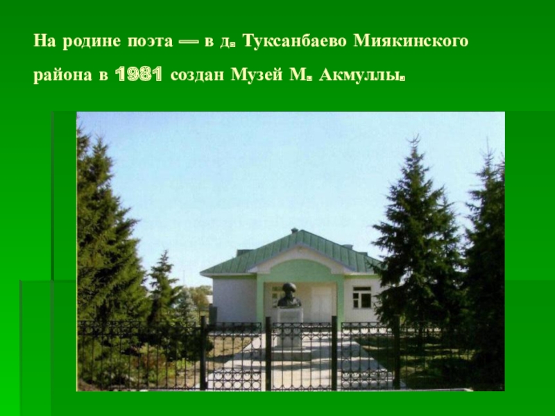 Слайд 17На родине поэта — в д. Туксанбаево Миякинского района в 1981