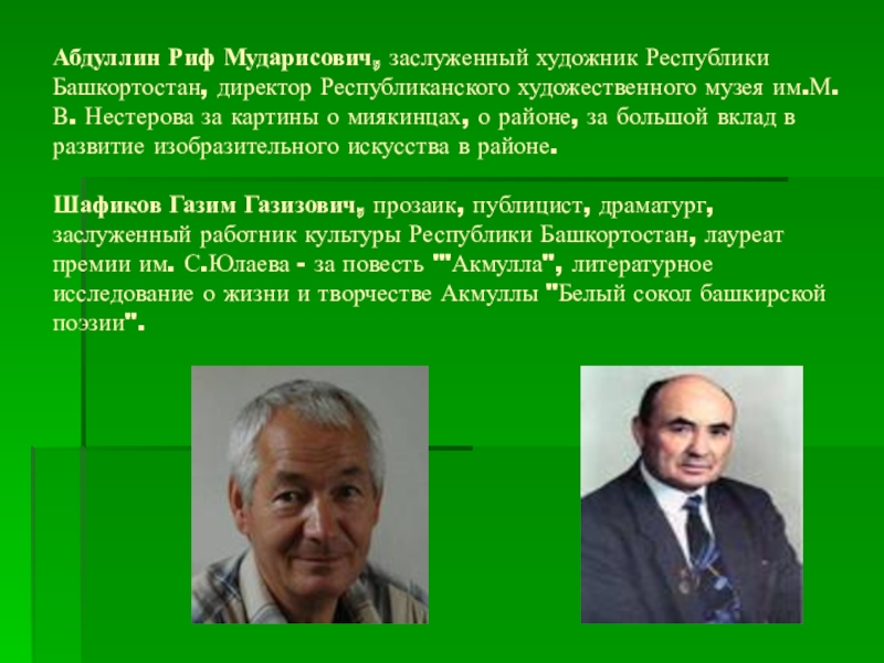 Слайд 27Абдуллин Риф Мударисович, заслуженный художник Республики Башкортостан, директор Республиканского художественного музея