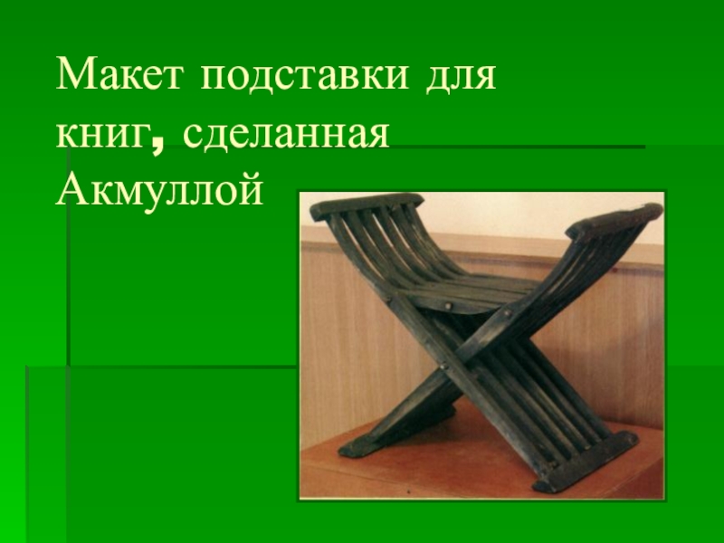 Слайд 20Макет подставки для книг, сделанная Акмуллой