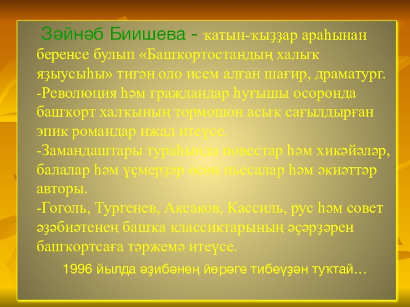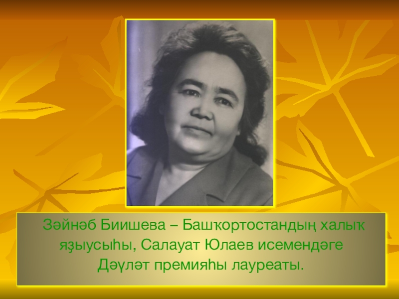 Слайд 2 Зәйнәб Биишева – Башҡортостандың халыҡ