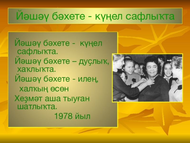 Слайд 8Йәшәү бәхете - күңел сафлыҡта