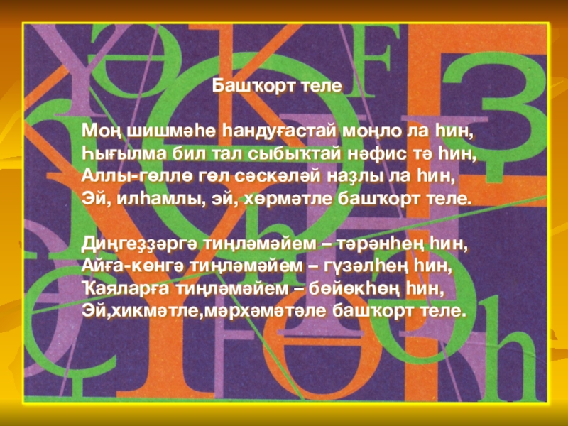Эй,хикмәтле,мәрхәмәтәле башҡорт теле.