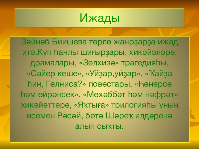 Зәйнәб Биишева төрлө жанрҙарҙа ижад