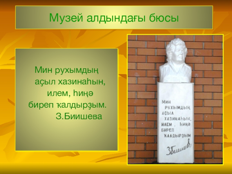 Слайд 20Зәйнәб Биишеваның тыуған ауылындағы йорт-музейы
