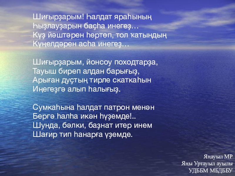 “Ҡуҙғал, Урал!” Ғ. Әмири һүҙҙәре, М. Вәлиев музыкаһы;
