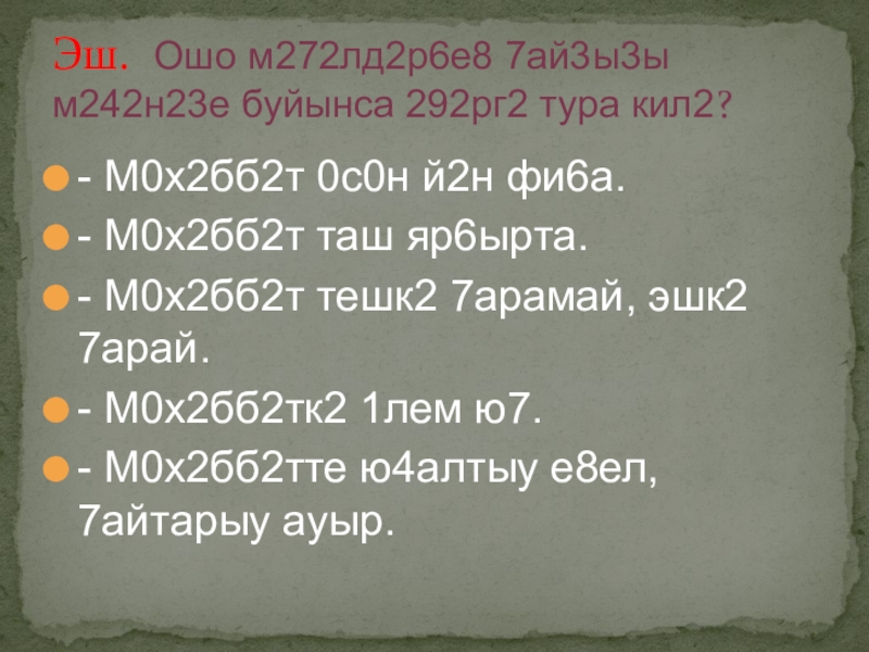 Эш. Ошо м272лд2р6е8 7ай3ы3ы м242н23е буйынса 292рг2 тура кил2?