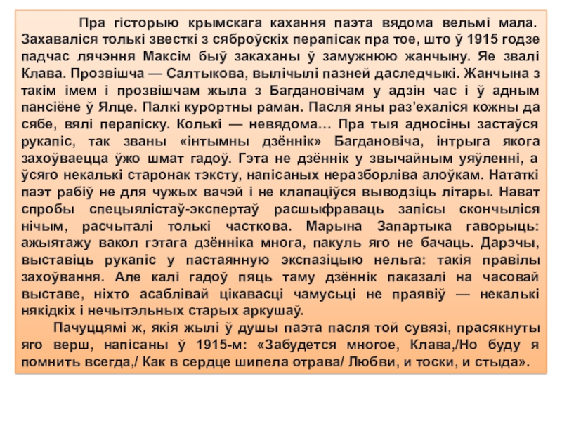 У канцы лютага 1917 года Багдановіч назаўсёды пакідае Мінск. Яго жыццёвы шлях абарвецца ў гэты ж год, 25 мая ў Ялце. А восенню Ванда Лявіцкая выйдзе замуж за пісьменніка Язэпа Лёсіка. Стане яму вернай жонкай і добрай маці для яго дзяцей.