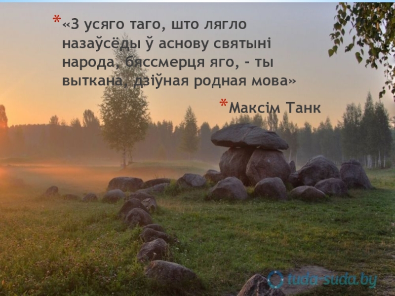 Слайд 4Толькі праз родную мову чалавек можа стаць беларусам, бо ў ёй