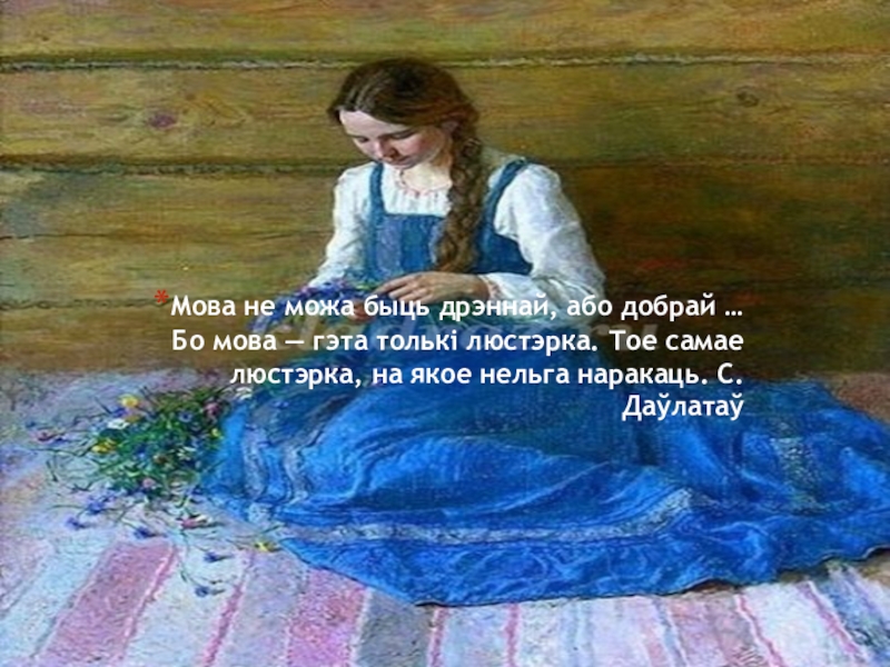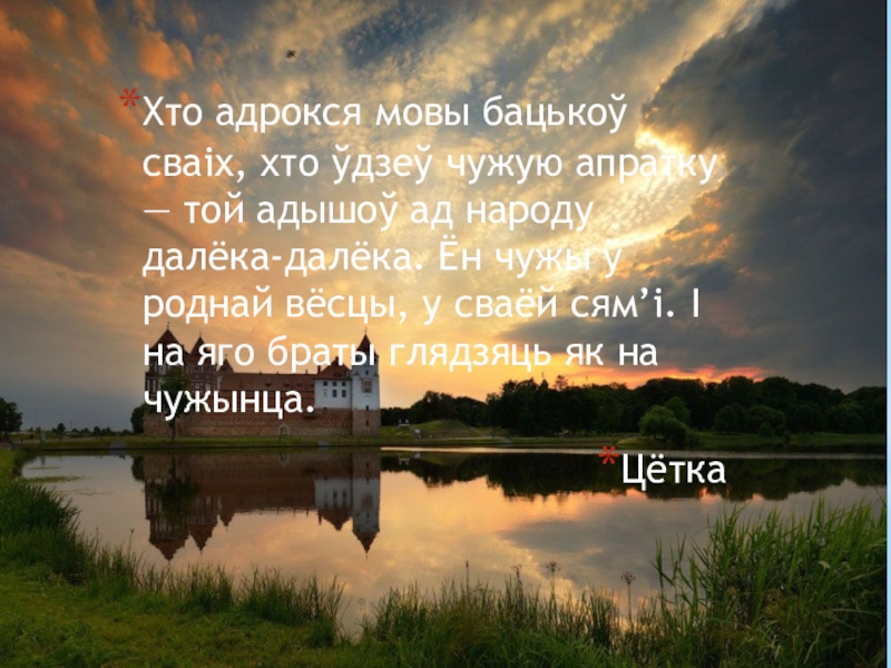 Слайд 16Хто адрокся мовы бацькоў сваіх, хто ўдзеў чужую апратку — той
