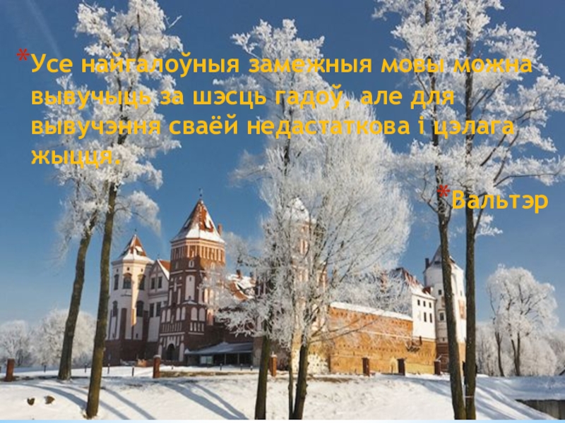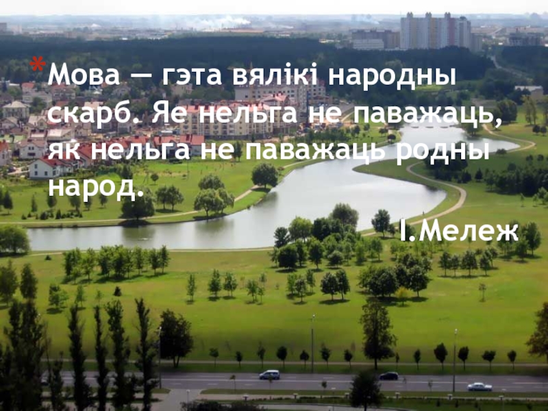 Слайд 20Мова — гэта вялікі народны скарб. Яе нельга не паважаць, як
