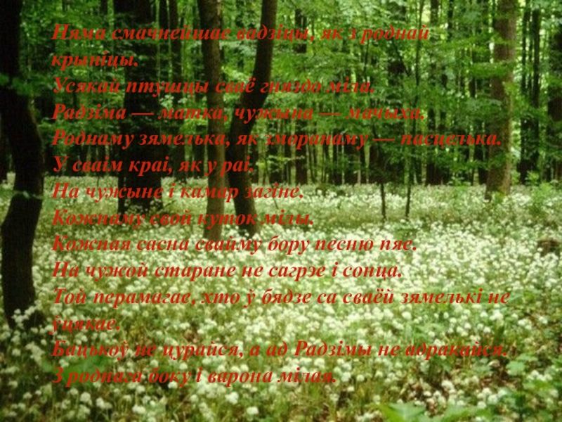 Слайд 10Няма смачнейшае вадзіцы, як з роднай крыніцы.