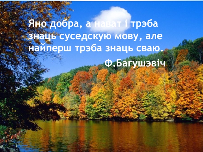 Слайд 19Яно добра, а нават і трэба знаць суседскую мову, але найперш