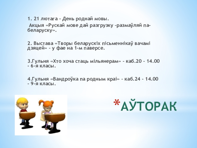 1. Гульня-квэст «У пошуках трапнага слова». – 14.00- каб.36 – 7-я