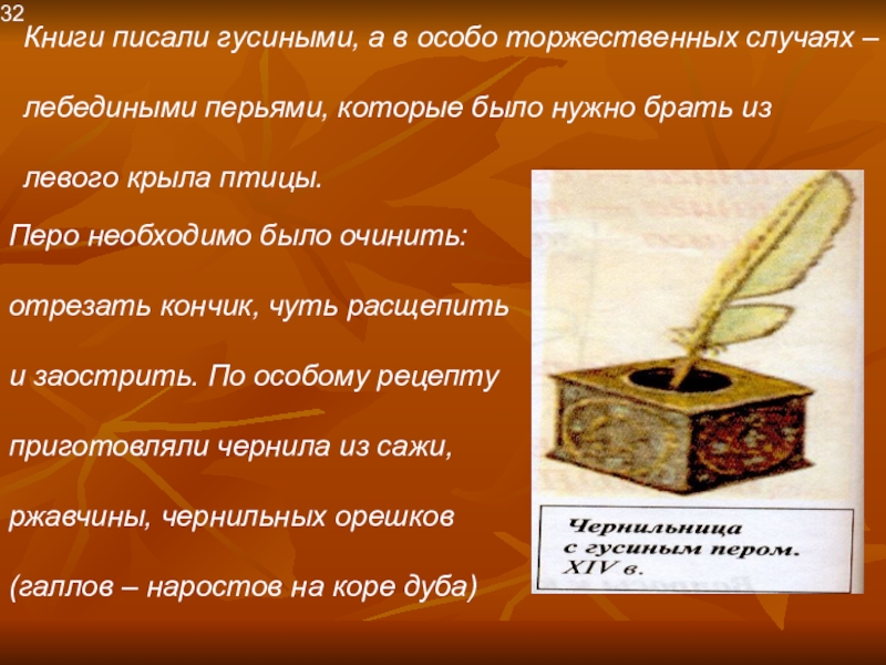 Перо необходимо было очинить: