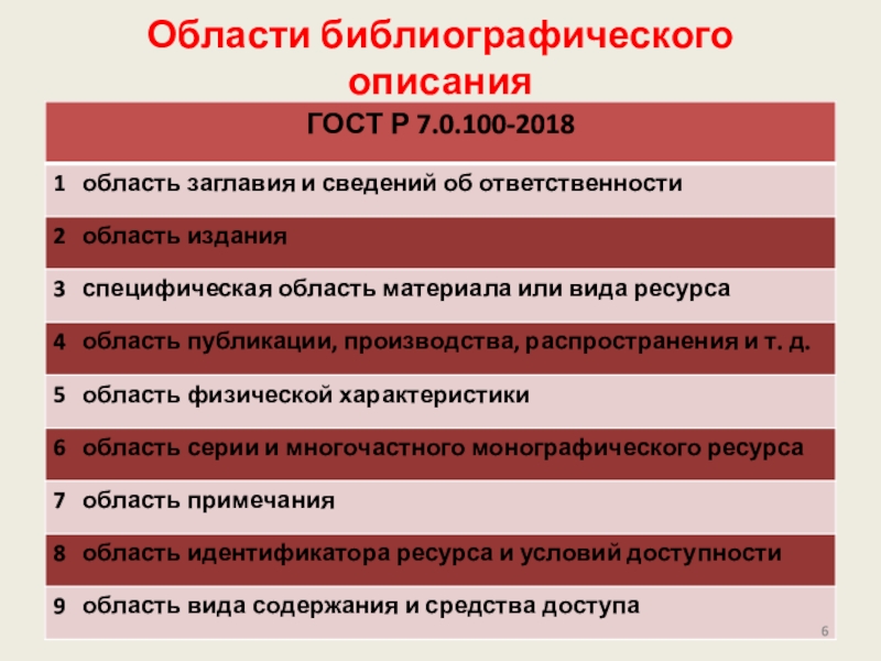 Слайд 6Области библиографического описания